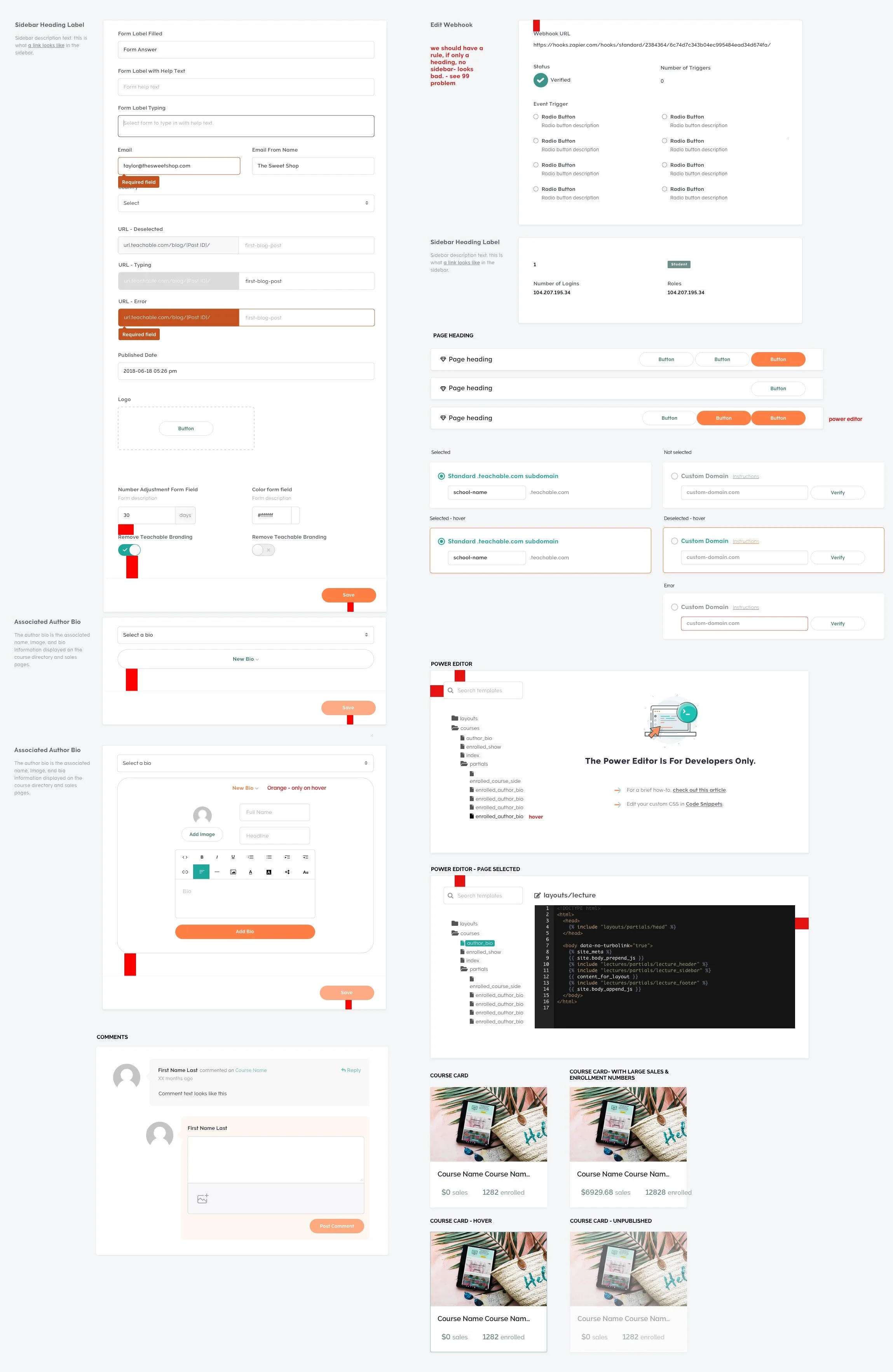 When I first joined Teachable’s Product Org in June 2017, I discovered that there was no system or consistency used for designing and building pages within the app. Not only did this lead to confusion and increased output time for designers but also increased engineering development time. Additionally, the lack of consistency creates a poor UX/UI for our users and diminishes the value we want to deliver to our users.